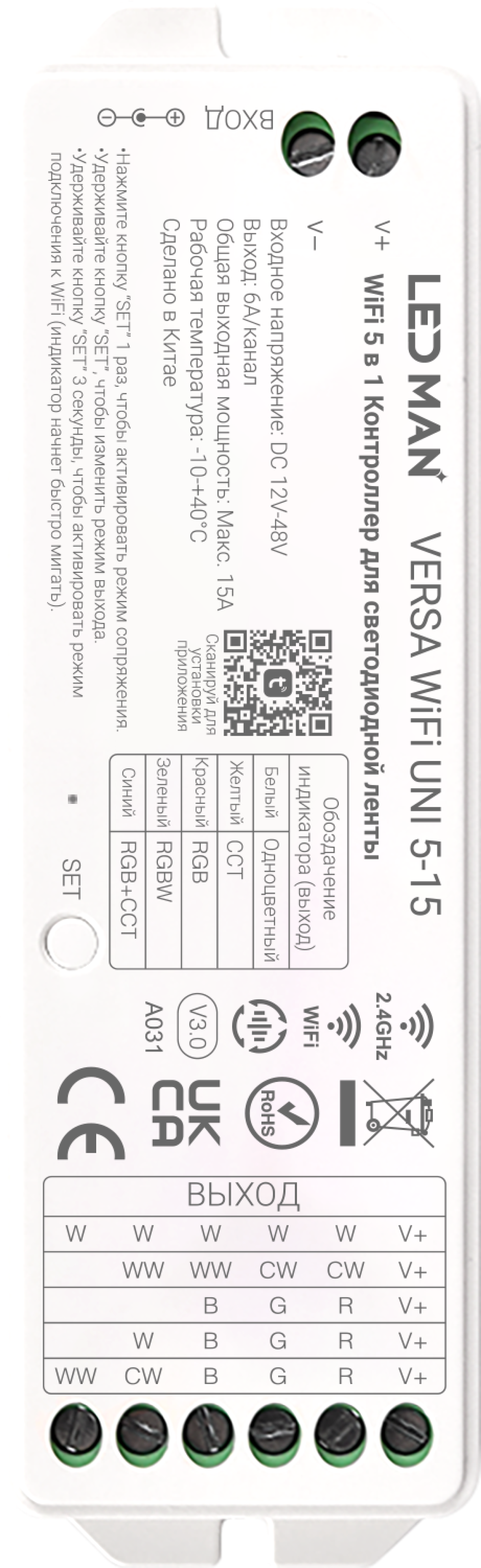 LED MAN, VERSA WiFi UNI 5-15, Контроллер 5 в 1, Одноцветный / CCT / RGB / RGBW / RGB+CCT, 12-48V,