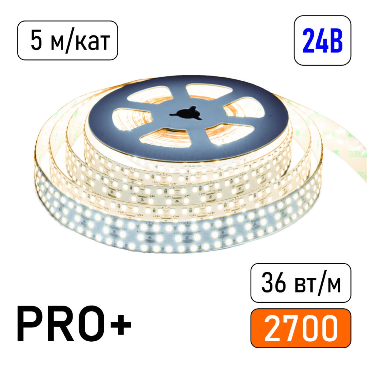 LED MAN, 2835 Лента св/д PRO+, 26вт/м, 288д/м, 24В, 2700K, 3М 9495, 3Oz, 15мм, 5м/кат, Двухрядная ЦЕНА ЗА 1 МЕТР