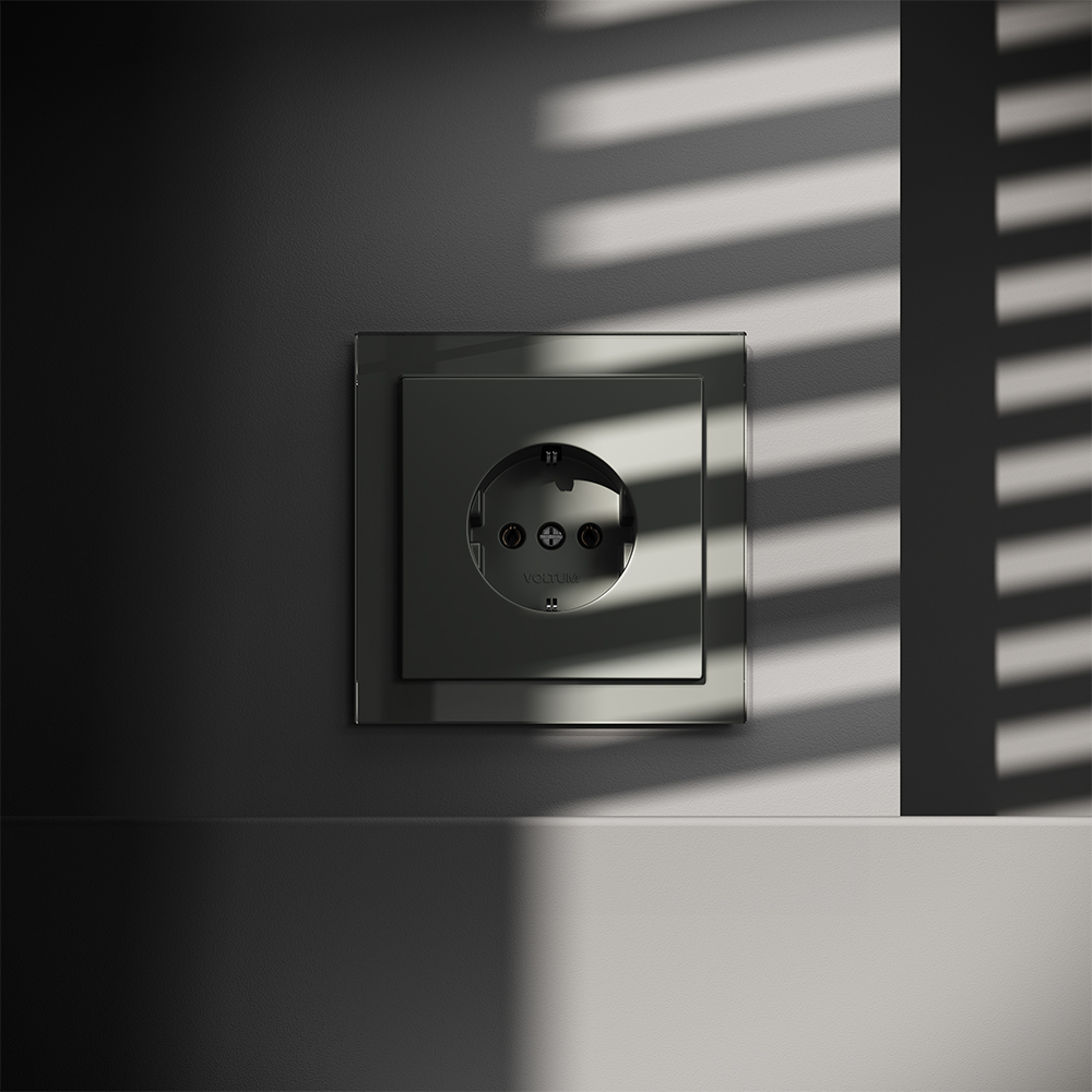 VLS040207 Розетка встраиваемая VOLTUM S70 с заземлением и защитными шторками, 16А, (графит)